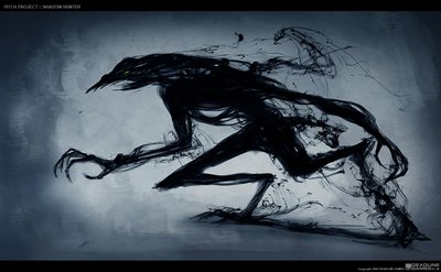 19) Bauk: A wall with a black shadow-like spot on the wall, in this shadow circle two yellow eyes shine with pure terror, and a large evil smile is seen as well, the smile is much like the Cheshire Cat. This shadow bogeyman also has more shadow spots on the wall where his claws come from. This creature is much like the Spiderman enemy named Spot, he can teleport his body through shadow portals.